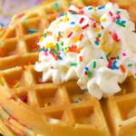 All the flavor and softness of cake, everything that is perfect about a waffle and let’s not forget how adorably birthday-ishly festive they are. Basically I’m obsessed and these will be made every birthday morning from now on, or of course any cheat day. Thank y’all so much for stopping by and I hope you all have a fantastic day!!!