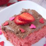 Obviously I can’t make a strawberry cake without chocolate frosting, because it doesn’t get much more Valentine’s Day than overpriced chocolate covered strawberries, ammiright? Juust kidding, kind of, hehe.