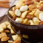 - In a large microwave safe bowl, place your Chex cereal and nuts, set aside.
