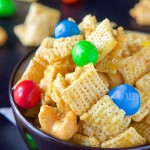 I used cashews because they’re a personal favorite but feel free to use whatever kind you like, and same with the peanut M&M’s, they have so many different kinds now you could totally experiment. I hope you can make some of this salty & sweet Chex Mix soon, and have a wonderful day y’all!