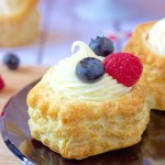 - Using a ziploc baggie with the end snipped off, or a piping bag with whatever tip you like best, pipe the filling into your cooled puff pastry shells, garnish with berries if you choose and serve.