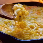 - Pour the macaroni mix into your iron skillet and place the 4 tablespoons of sliced butter onto the top of your macaroni, which is optional.